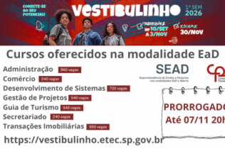 Confira os resultados dos exames presenciais dos cursos técnicos em Administração, Comércio, Desenvolvimento de Sistemas, Gestão de Projetos, Guia de Turismo, Secretariado e Transações Imobiliárias. Gabaritos – 13/12/25 Administração Comércio Desenvolvimento de Sistemas...